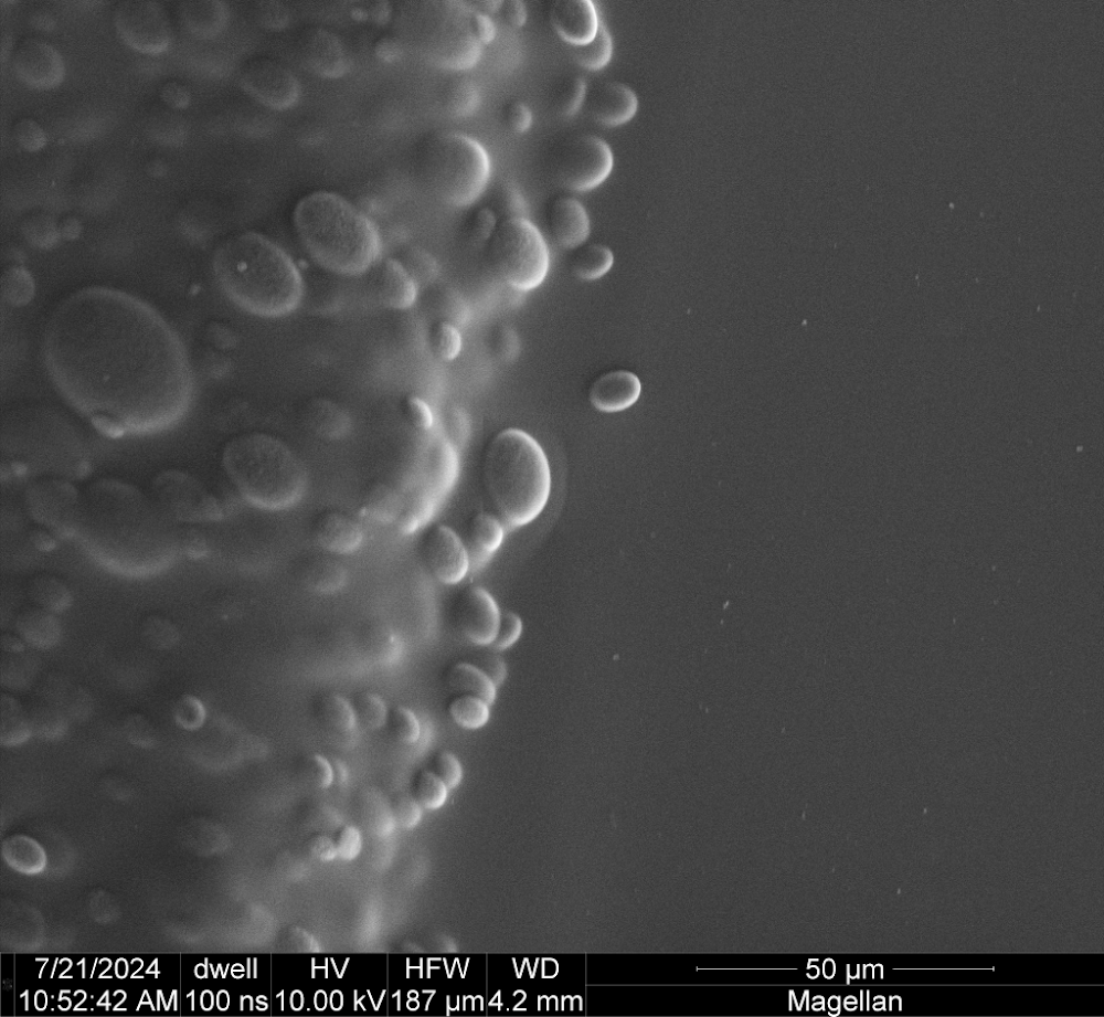 With some help from Aaron Straight over in Biochemistry we made it through the process and I prepared some samples for scanning electron microscopy (SEM) by simply depositing some of the final sphere suspension on silicon wafer chips: