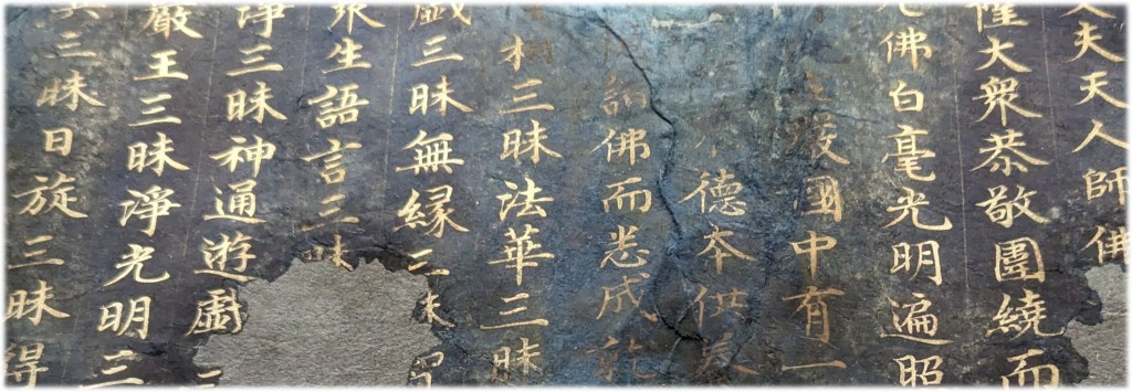 For a while I thought about making and breaking some Korean Silla-style ceramics, repairing them via kintsugi with gold repair lines, and then laying indigo-dyed miniature silk text along the gold lines. That would be interesting to try sometime but I never came up with a solid connection of that visual scheme to the main themes of this project.