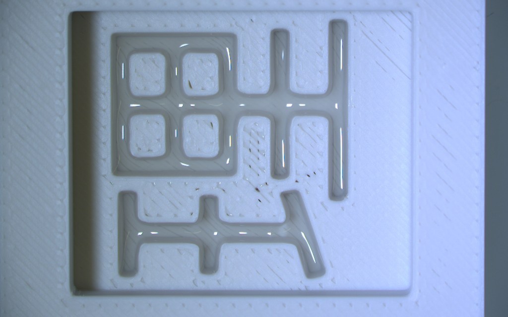 - Carefully pipetted concentrated SF into Ri mold in “dish” PLA