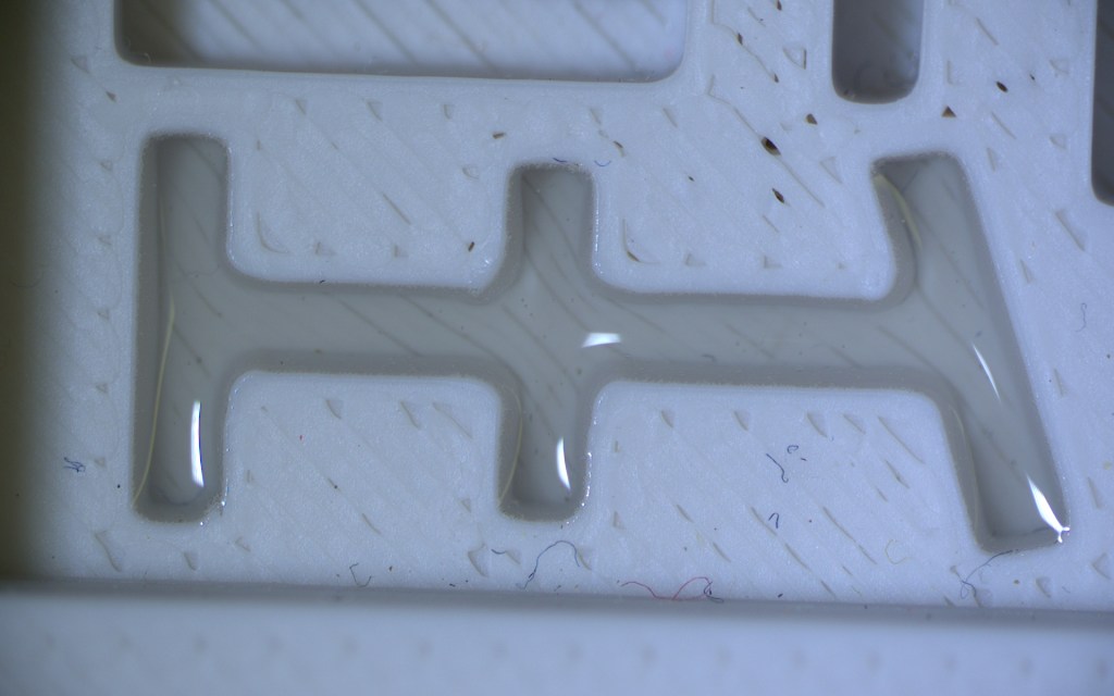 - ~1:40pm Tuesday remove PLA, drip dry and blow a little house nitrogen – photo taken on Olympus stereo