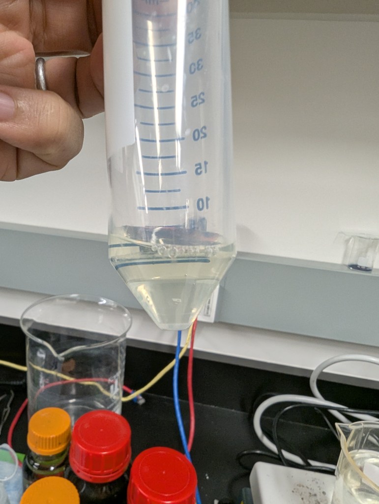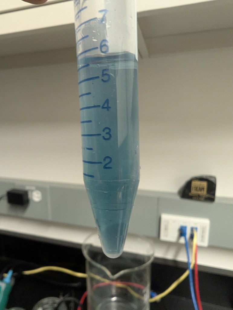 - Filled tube with ~14ml DI water, capped to let sit