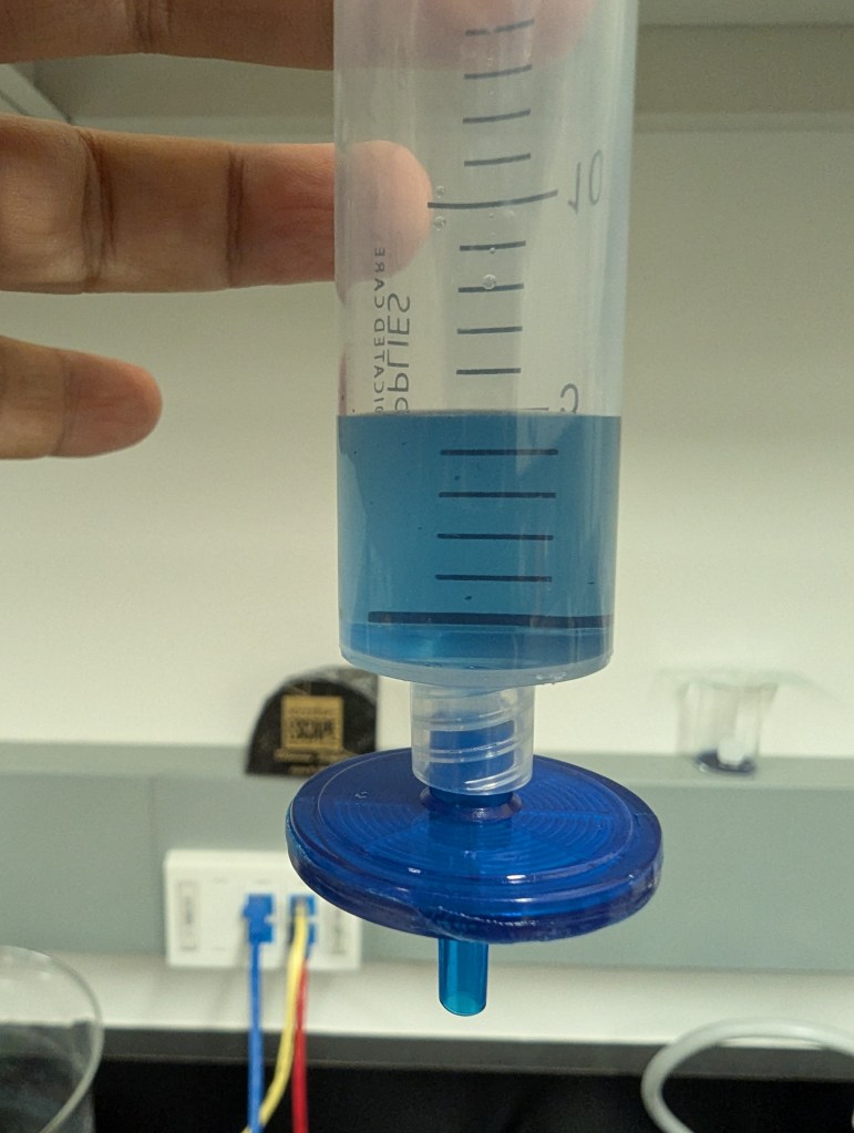 - Also injected 100ul indigo solution into 5ml DI, shook/vortexed, and will leave overnight uncapped to see if blue water forms…